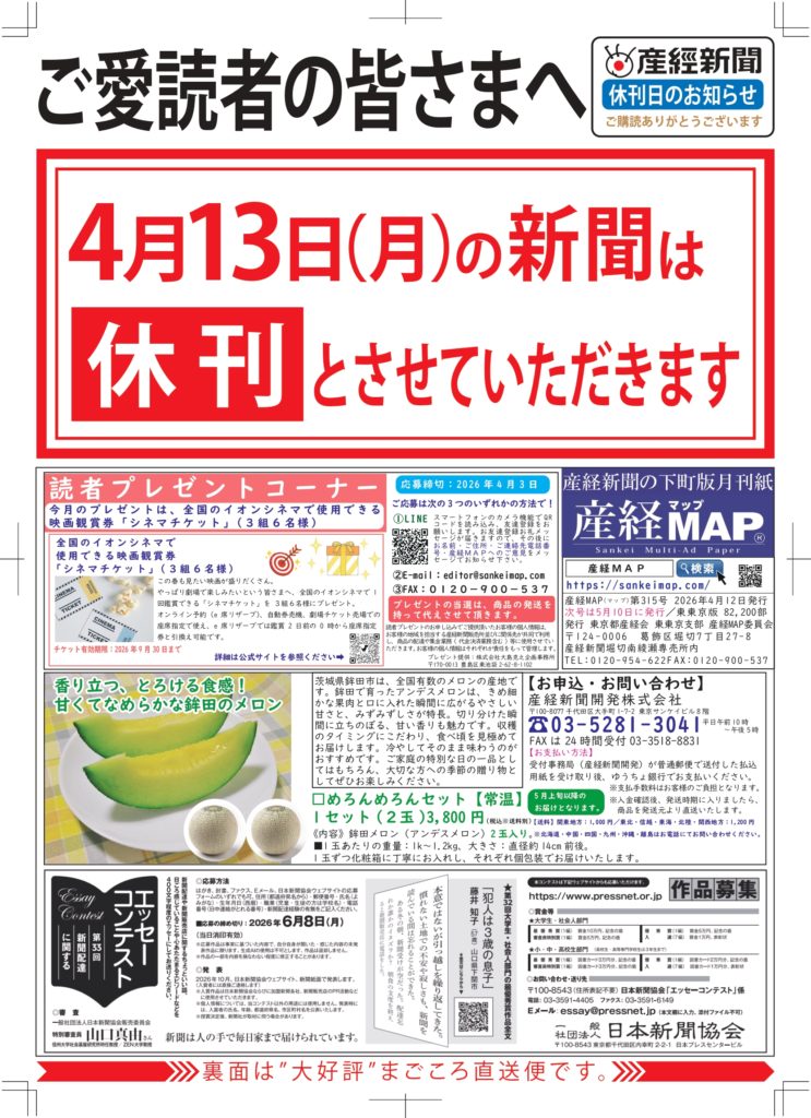 産経MAP第315号/新聞休刊日のお知らせ