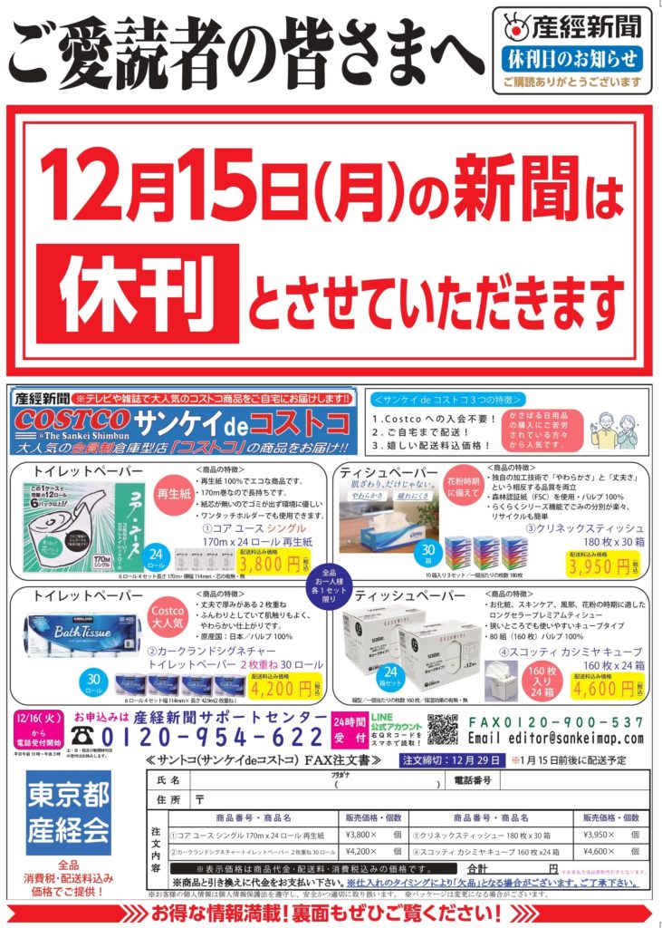 【東京都内限定】産経新聞・サンケイスポーツご購読のお申込み